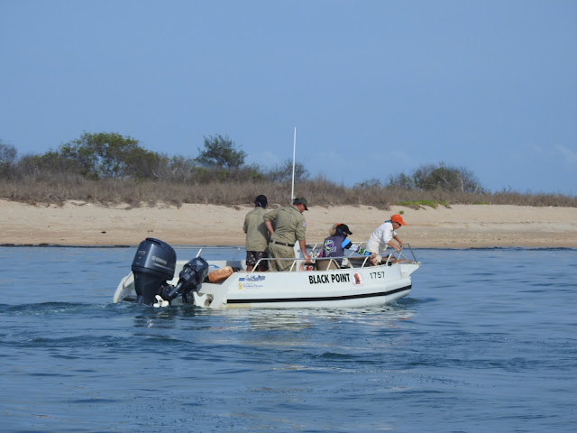 We met the Cobourg rangers and the CDU scientists near Sandy Island off Danger Point. As the conditions were favourable they were keen to check out Sandy Island - a known nesting site for Olive Ridley Turtles. No nests were found.